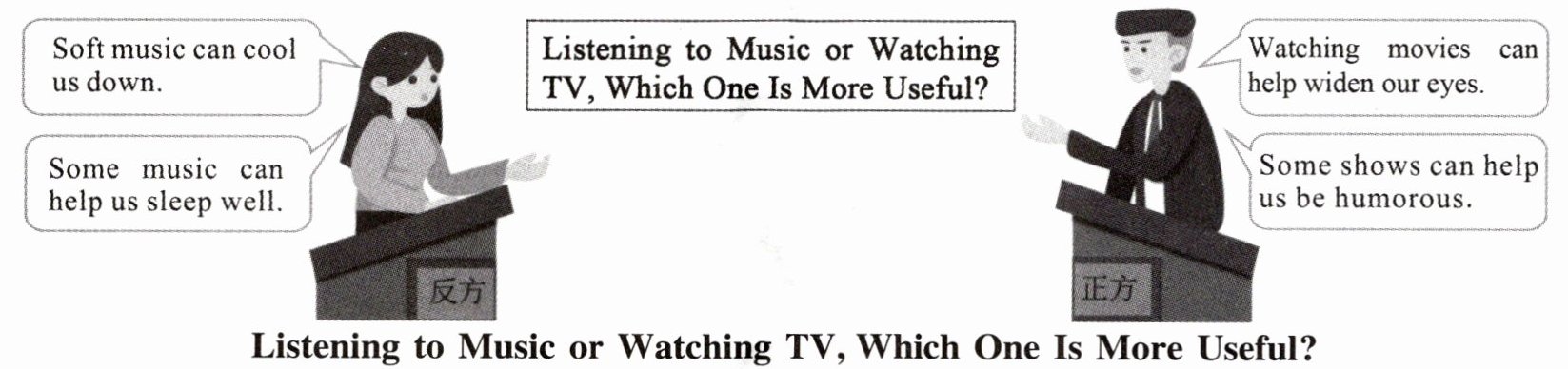 假如你是李佳,本周你将参加你校举办的英文辩论赛。请你仔细观察下图,选择一方的观点作为你的论点,写一篇 100 词左右的短文为比赛作准备,要求写出 3~4 条论据来支撑你的论点。