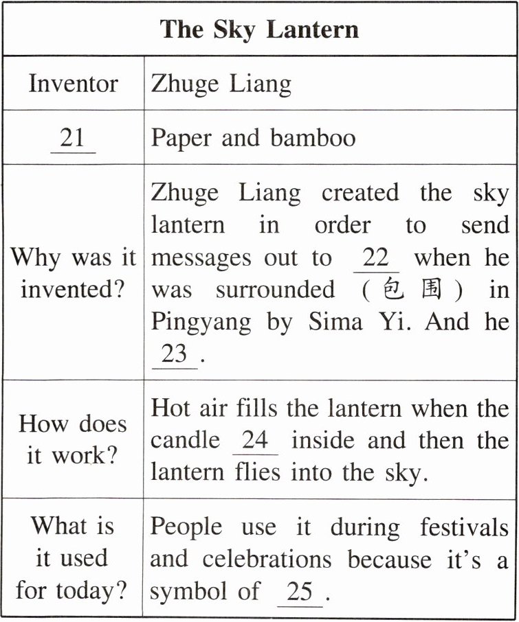 四、听短文,根据短文内容完成所缺信息。短文念三遍。