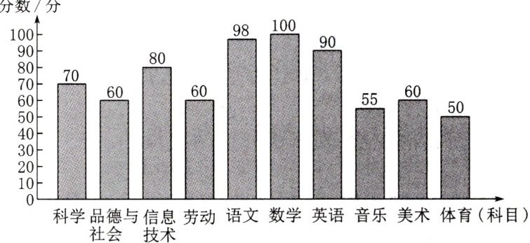 下面是王强期末考试的各科成绩统计图,请你阅读后回答问题。