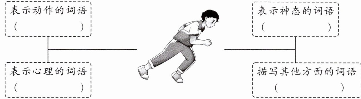 八、话剧舞台上,小演员在表演上课迟到的情景。请你观察演员的表演细节,先完成思维导图,再根据思维导图把当时的情景描写出来。