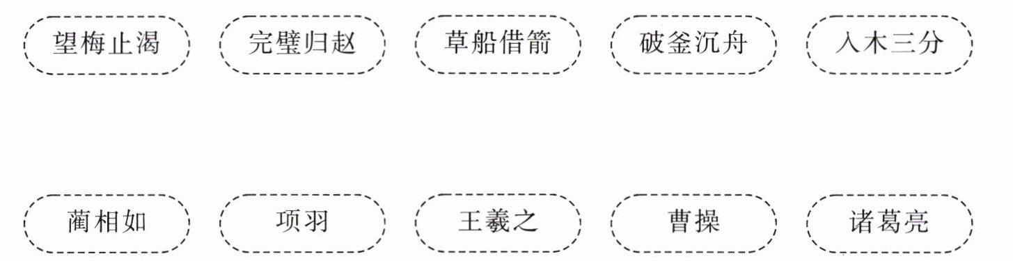 望梅止渴—曹操 完璧归赵—蔺相如 草船借箭—诸葛亮 破釜沉舟—项羽 入木三分—王羲之
