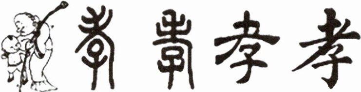 (1) 示例:古文字的“孝”字,上部是一个弯腰驼背、白发飘飘的老人形,下边的子代表小孩,表示小孩搀扶老人的意思。敬重老人,帮助老人,这正是孝道的具体表现之一。“孝”,是中华民族的传统美德,是一个人立身处世最基本的道德规范。