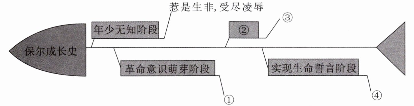 7.阅读《钢铁是怎样炼成的》内容概述,梳理“保尔成长史”,补全下面图表。