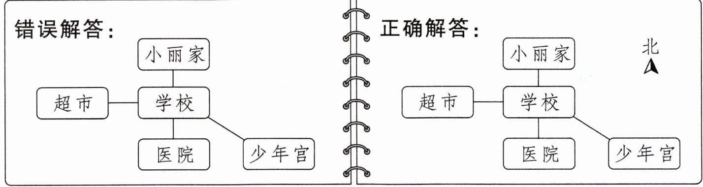 错因分析:绘制示意图时,要按照“上北下南、左西右东”的方法绘制,一定要记得用“▲”标出北面。