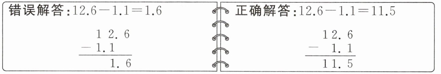 错因分析:列竖式计算小数加、减法时,小数点必须上下对齐。
