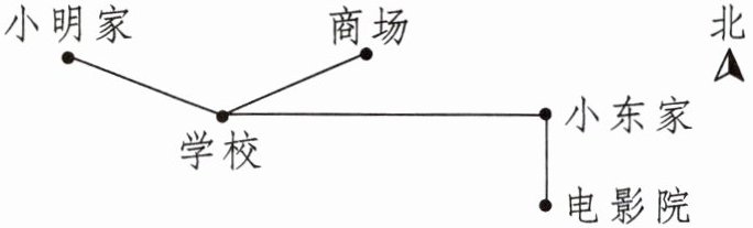商场在学校的()方向,小明家在学校的()方向,小东家在电影院的()面。