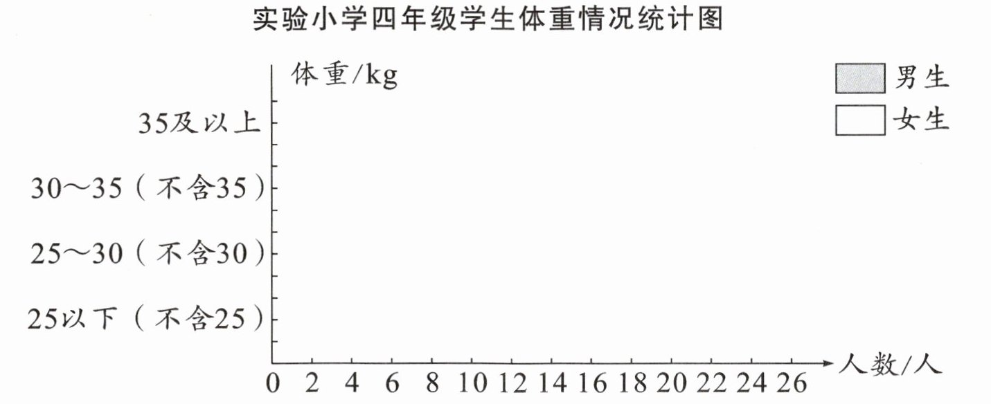 三、根据实验小学四年级学生体重情况完成统计图,并填一填。
