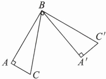 例 在三角形 ABC 中,已知$∠A= 90^{\circ },∠ABC= 20^{\circ },∠C= 70^{\circ }$。把三角形 ABC 绕点 B 按逆时针方向旋转一个角度后得到三角形$A'BC',∠C'BA= 90^{\circ }$(如图)。三角形 ABC 旋转了多少度?