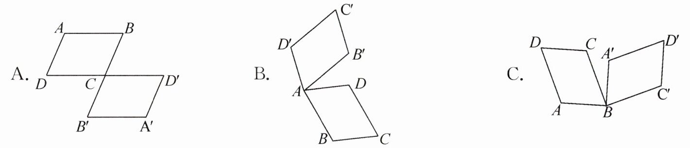 3. 下图中由平行四边形 ABCD 以点 A 为中心旋转得到的图形是()。
