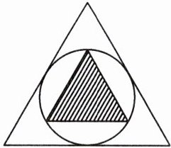 七、张伯伯在院子里修建了一个等边三角形的花坛,并在花坛内修了一个最大的圆形,再在圆内修了一个小等边三角形。已知小等边三角形的占地面积是$1.2m^{2}$。你能算出大等边三角形的面积吗?