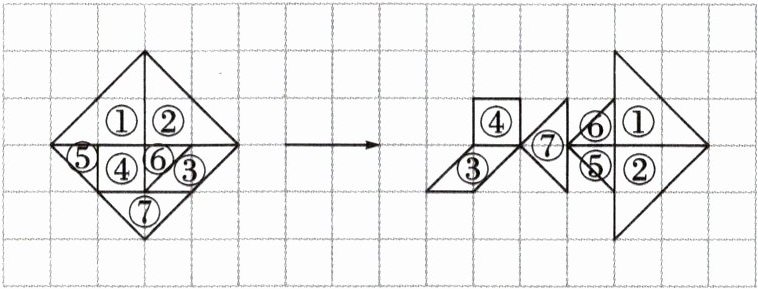 1. 图形①先绕直角顶点()时针旋转()°,然后向()平移()格;图形②先绕直角顶点()时针旋转()°,然后向()平移()格。