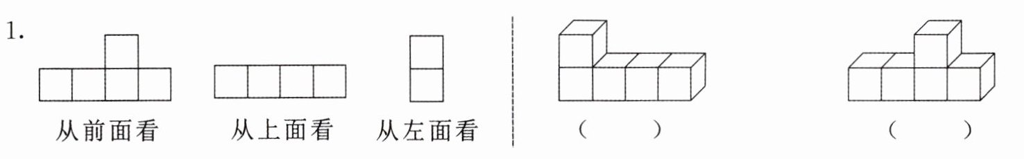 三、右边哪个几何体符合左边的要求?在对的括号里画
