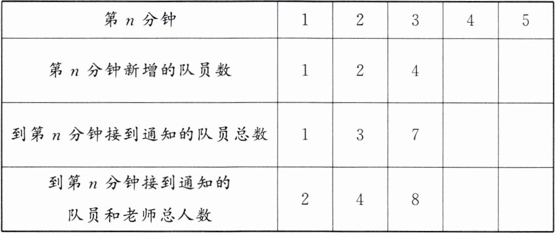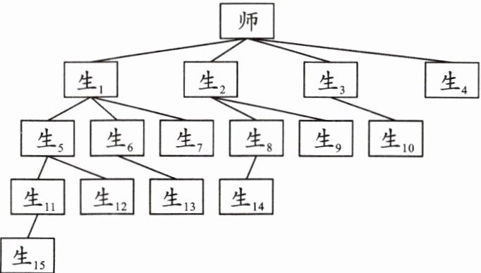方案二:把15名学生分成3组,每组5人,设一名组长。老师通知组长,组长再一个一个接着通知其他4名学生,需要()分钟。