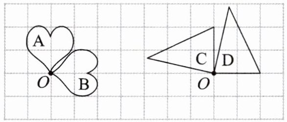 (2)图形$C可以看成是图形D绕点O$按()方向旋转()得到的。