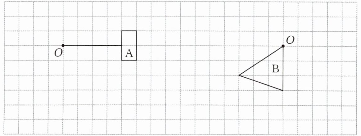 1. 画出图形$A绕点O顺时针旋转90^{\circ}$后的图形,画出图形$B绕点O逆时针旋转90^{\circ}$后的图形。