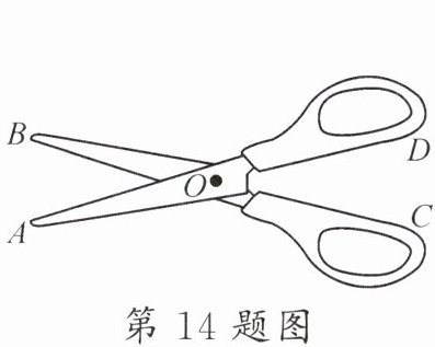 14. 如图,当$∠BOD减小21^{\circ }$时,$∠AOC$减小____$^{\circ }$.