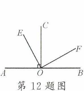 12. 如图,$OC⊥AB,∠AOE= ∠COF$,则$∠EOA+∠BOF= $____.