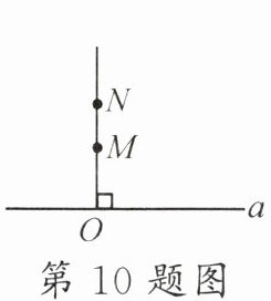 10. 如图,如果直线$ON⊥$直线a,直线$OM⊥$直线a,那么OM与ON重合,理由是____.