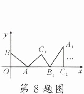 8.如图,在平面直角坐标系中,将$\triangle ABO沿x轴向右滚动到\triangle AB_{1}C_{1}$的位置,再到$\triangle A_{1}B_{1}C_{2}$的位置……依次进行下去,若已知点$A(4,0),B(0,3),AB= 5$,则点$C_{100}$的坐标为 ()