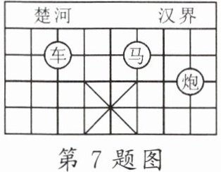 7.如图,已知棋子“车”的坐标为$(-2,-1)$,棋子“马”的坐标为$(1,-1)$,则棋子“炮”的坐标为 ()