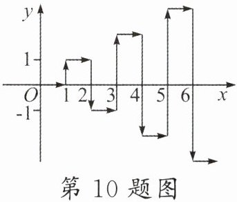 10.如图,在平面直角坐标系中,动点P按箭头所示的方向做折线运动,第一次从原点运动到$(1,0)$,第二次从$(1,0)运动到(1,1)$,第三次从$(1,1)运动到(2,1)$,第四次从$(2,1)运动到(2,-1)$,第五次从$(2,-1)运动到(3,-1)$,第六次从$(3,-1)运动到(3,2),... ... $,按这样的运动规律(向右始终保持运动一个单位长度,向上或向下比前一次的向下或向上都多运动一个单位长度),经过第201次,点P的坐标是____.