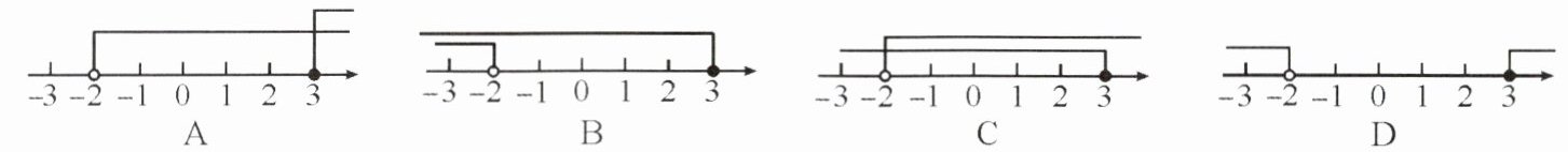 的解集在数轴上表示正确的是 ()