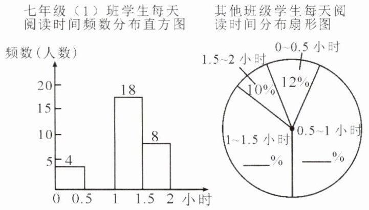 (3) 除七年级(1)班外,七年级其他班级每天阅读时间在 1~1.5 小时的学生有 165 人,请你补全扇形统计图;