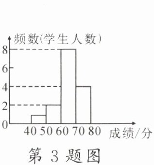 3. 如图是某组 15 名学生数学测试成绩统计图,则成绩高于或等于 60 分的人数是()