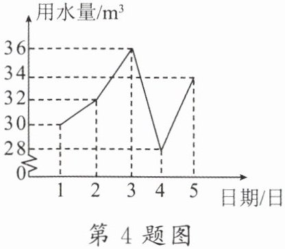 4. 如图是某住宅小区 6 月 1 日至 5 日每天用水量的变化情况,那么这 5 天平均每天的用水量是()