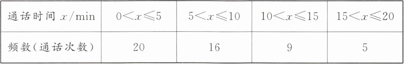2. 小明统计了他家今年 5 月份打电话的次数及通话时间,并列出了频数分布表:
