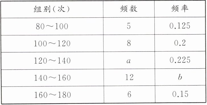 某校七年级部分学生一分钟跳绳次数的频数分布表