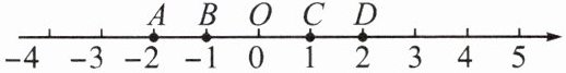 1.如图,数轴上的点A,B,O,C,D分别表示数-2,-1,0,1,2,则表示数$2-\sqrt {5}$的点P应落在 ()