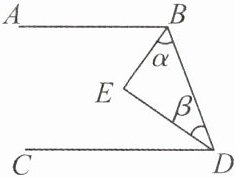 16. 如图,$ BE $ 平分 $ \angle ABD $,$ DE $ 平分 $ \angle BDC $,且 $ \angle \alpha + \angle \beta = 90^\circ $.试说明:$ AB // CD $.