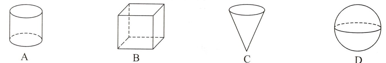 2 2024·鞍山期末 下列立体图形中,从上面看到的图形不是圆的是 (