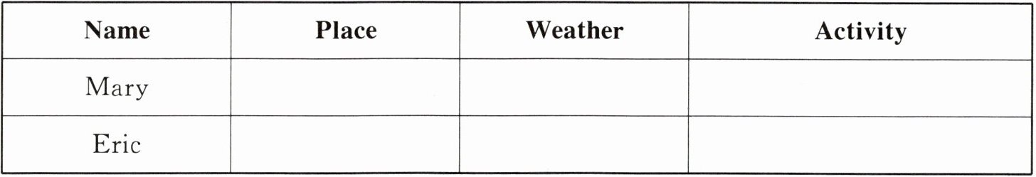 | Mary | Ganzhou | Sunny and hot | visiting my grandparents |