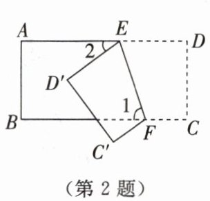 2. 如图,将一张长方形纸片 ABCD 沿 EF 折叠,C,D 两点分别与$C',D'$对应。若$∠1= 2∠2$,则$∠AEF= $______°。
