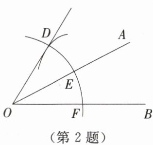 2. 如图,已知$∠AOB$,以点$O$为圆心,以任意长为半径作弧,分别交$OA$,$OB于点E$,$F$;再以点$E$为圆心,以$EF$长为半径作弧,两弧相交于点$D$,作射线$OD$。若$∠AOB= 28^{\circ }$,则$∠BOD= $()