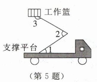 5. 如图,这是某种工程车的截面示意图,工作篮底部与支撑平台平行。若$∠1= 35^{\circ }$,则$∠2+∠3= $______$^{\circ }$。