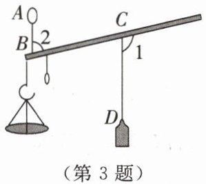 3. 一把杆秤在称物时的状态如图所示,其中秤毫$AB和拴秤锤的细线CD$都是铅垂线(铅垂线与水平面垂直)。若$∠1= 102^{\circ }$,则$∠2= $______$^{\circ }$。
