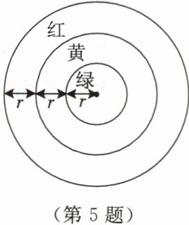 5. 小明操控一辆遥控汽车(可看作一个点)在如图所示的圆形区域内运动,遥控汽车开动后随机停止,判断遥控汽车停在黄色区域与停在绿色区域的概率是否相等,并求出停在红色区域的概率。