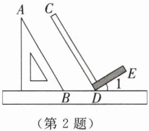 2. 在同一平面内,将直尺、含$30^{\circ}角的三角尺和木工角尺(CD\perp DE)$按如图所示的方式摆放。若$AB// CD$,则$\angle 1= $______$^{\circ}$。