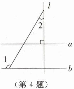 4. 如图,直线$a// b$,直线$l\perp a$。若$\angle 1 = 120^{\circ}$,则$\angle 2= $______$^{\circ}$。