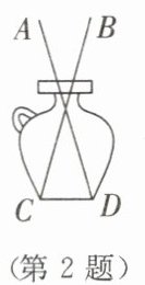 2. 如图,为了测量容器底部内径CD,小明将两根细木条的中点固定在一起,通过测量A,B两点之间的距离,得到CD的长度。其依据的数学原理是()