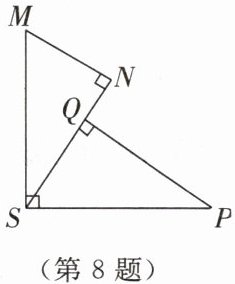 8. 如图,已知$MS\perp PS$,$MN\perp SN$,$PQ\perp SN$,垂足分别为$S$,$N$,$Q$,且$MS = PS$。请说明:$\triangle MNS\cong\triangle SQP$。