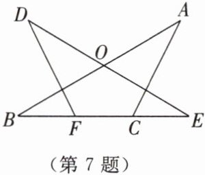 7. 如图,点$F$,$C在BE$上,$DE与AB相交于点O$,$OB= OE$,$BF= CE$,$∠A= ∠D$。请说明:$△ABC\cong △DEF$。