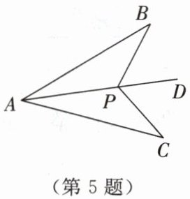 5. 如图,已知$P是∠BAC的平分线AD$上的一点,请添加一个条件:(只需填写一种情况),使得$△ABP\cong △ACP$。