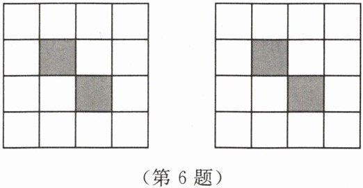 6. 如图,在正方形网格中,有两个小正方形已涂上阴影。请将图中其余某些小正方形涂上阴影,使整个阴影部分构成一个轴对称图形,并且有两条对称轴。(要求用两种不同的方法)