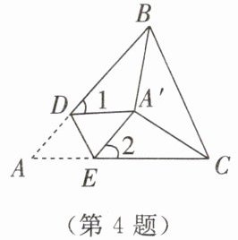 4. 如图,将三角形纸片ABC沿DE折叠,使点A落在点$A'$处,且$BA'平分\angle ABC$,$CA'平分\angle ACB$。若$\angle BA'C= 115^{\circ}$,则$\angle 1+\angle 2= $______$^{\circ}$。