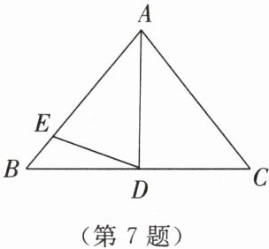 7. 如图,在△ABC中,AB= AC,AD为△ABC的中线,点E在AB上,AD= AE,连接DE。若∠BAC= 76°,求∠BDE的度数。