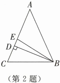 2. 如图,在等腰三角形ABC中,BD是腰AC上的高,BE是∠ABC的平分线。若∠CBD= 25°,则∠DBE= ()